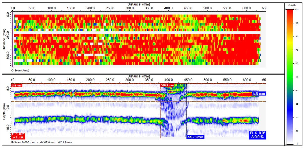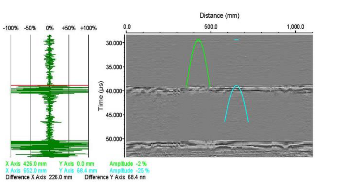L'output è autoesplicativo e consente di determinare esattamente la profondità della corrosione o delle crepe, come mostrato nell'immagine.