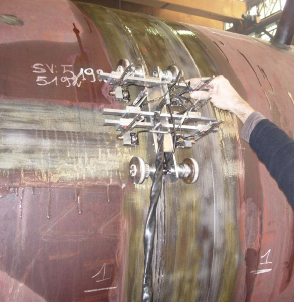 Viene comunemente utilizzato per l'esame delle saldature circonferenziali di recipienti a pressione, scambiatori di calore e tubazioni di grande diametro. Il risultato viene fornito in tempo reale e questo riduce il normale divario tra i risultati della radiografia e quelli della radiografia. Lo scanner permette di scansionare con fino a 5 coppie di trasduttori, in modo da controllare tutto il volume saldato in un solo passaggio.