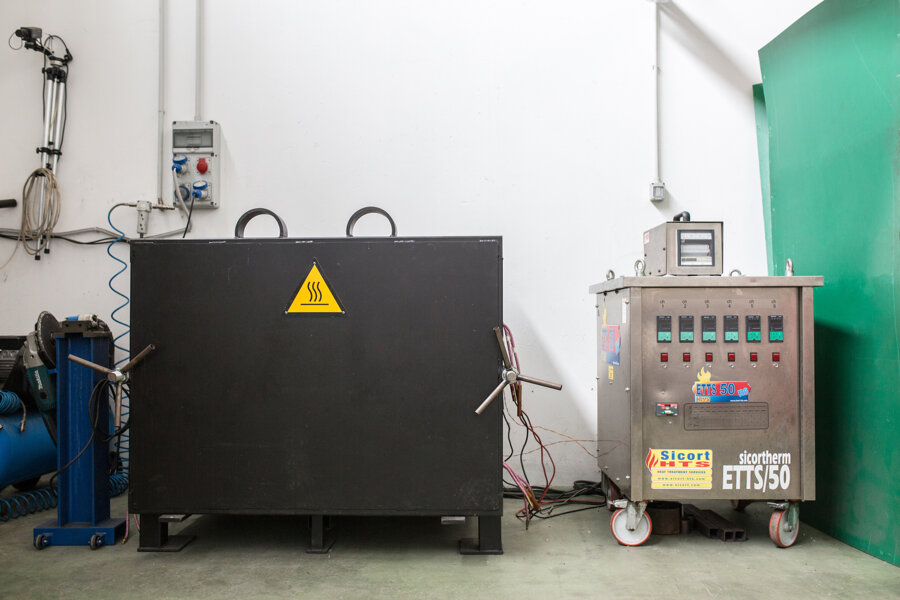 Il forno elettrico ci permette di realizzare trattamenti termici simulando le stesse caratteristiche di quelli che dovranno essere realizzati durante il ciclo di costruzione.